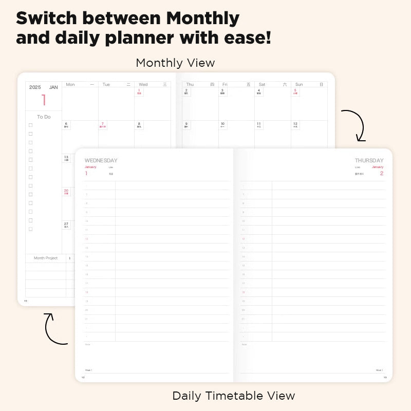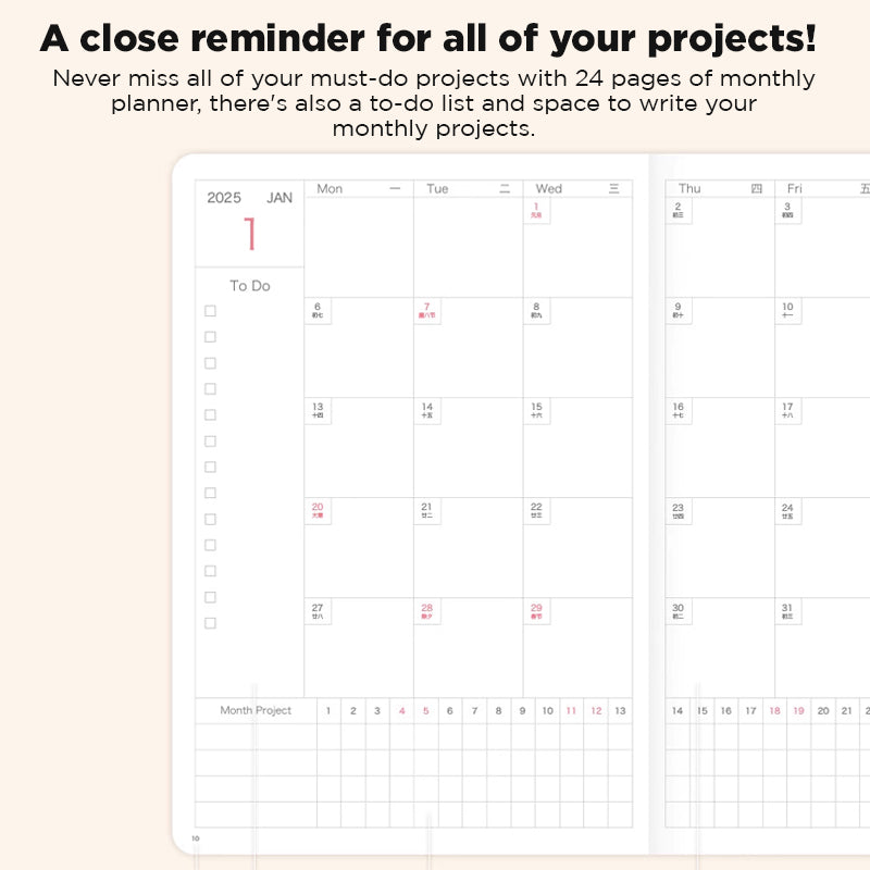 - Monthly View with Additional To-do List and Monthly Project Segment